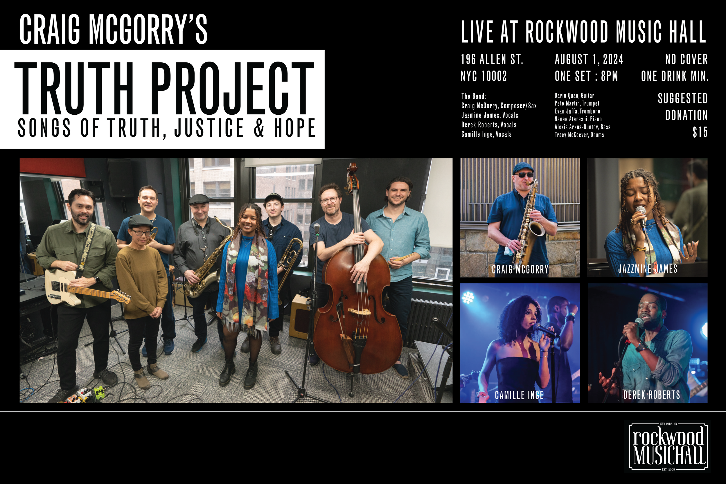 The Truth Project: Songs of Truth, Justice, & Hope is a new, social-justice music project by NYC-based songwriter/composer, saxophonist, and full-time NYC public school music teacher Craig McGorry.